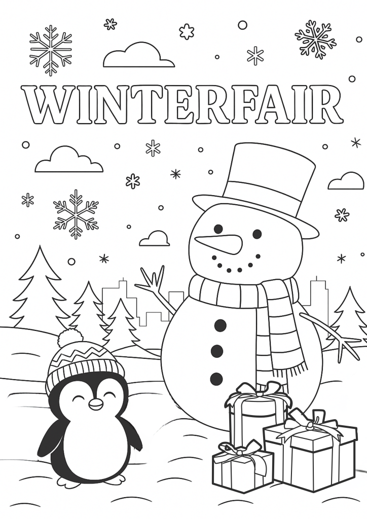 Pak je kleurpotloden, stiften of krijtjes erbij en laat je creativiteit zien!Kleur de speciale Winterfair-kleurplaat zo mooi mogelijk...